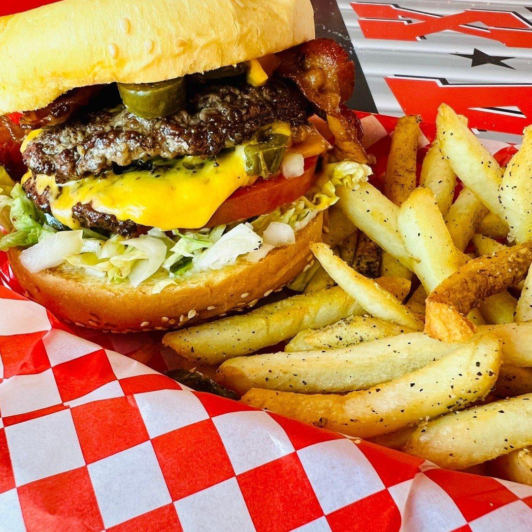 If you’re looking for a true burger joint experience, JAX Burgers, Fries & Shakes is a must-visit. Their Maverick Burger is a fan favorite, stacked with fresh toppings and served on a toasted bun alongside their crispy hand-cut fries.