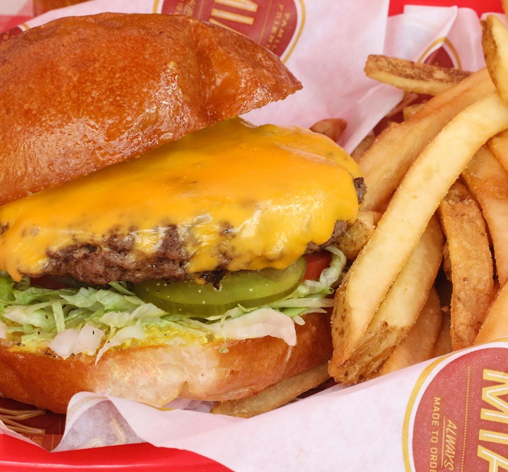 If you’re looking for a true burger joint experience, JAX Burgers, Fries & Shakes is a must-visit. Their Maverick Burger is a fan favorite, stacked with fresh toppings and served on a toasted bun alongside their crispy hand-cut fries.