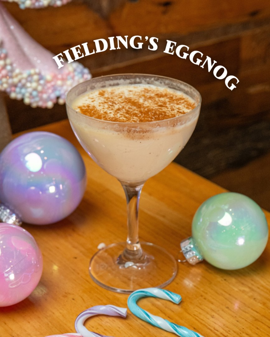 Holiday season tastes so fire at Fielding’s Wood Grill. Our holiday cocktails are officially here, and we’re kicking things off with a classic- Fielding’s Eggnog Fielding’s Eggnog: Maker’s Mark Kentucky whiskey, milk, cream, star anise, vanilla, nutmeg, cloves, egg yolks, brown sugar Rich, festive, and crafted with care. Come raise a glass with us.