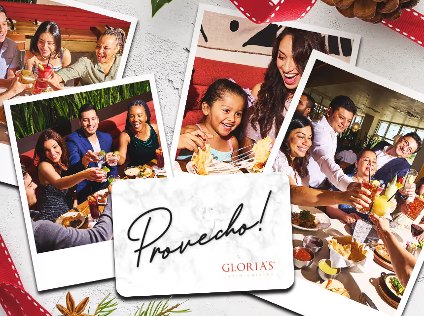 A Gift To Bring People Together Give the gift that brings people together for the holidays. Buy $100 in Gloria’s Gift Cards and receive a $25 Bonus eGift Card to keep the celebrations going into the New Year. Because when we gather around the table, everything truly is better together.