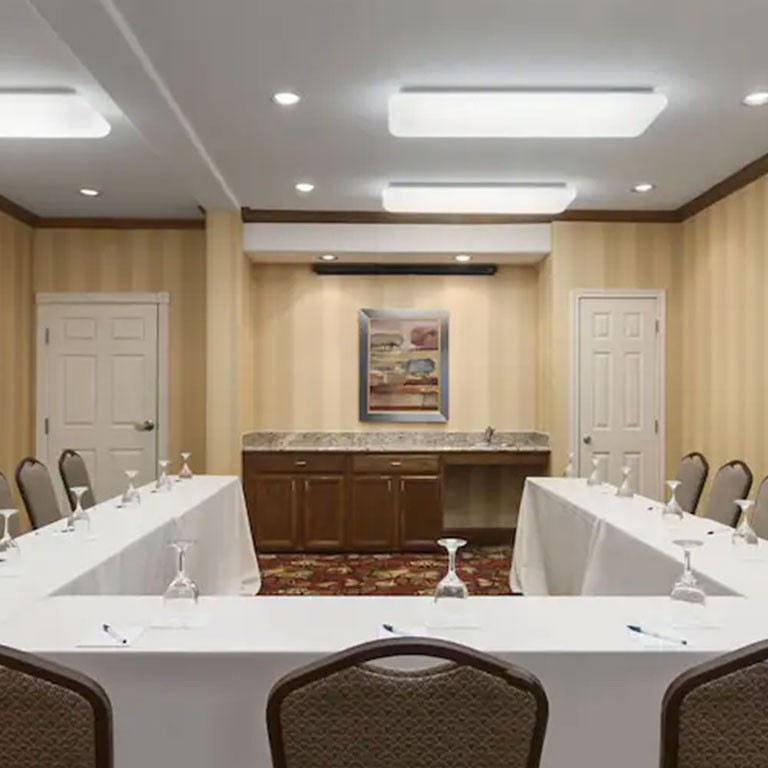 Homewood Suites offers a range of flexible meeting spaces to accommodate various group sizes. The property features a 300 sq. ft. boardroom, a 408 sq. ft. Ashmore Room, and their largest event space, a 1,296 sq. ft. second-floor meeting room that can also be divided into two 648 sq. ft. rooms for added flexibility.