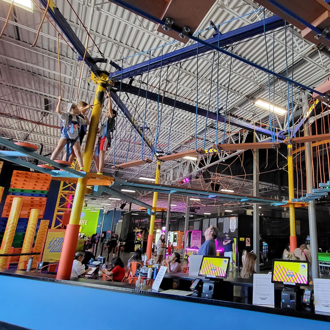 Urban Air Trampoline & Adventure Park is an action-packed indoor destination for kids, teens, and adults. Voted “Best Gym in America for Kids” by Shape Magazine and “Best Trampoline Park,” it’s the perfect year-round spot for adventure in a fully climate-controlled environment. Guests can enjoy trampolines, climbing walls, bumper cars that flip 360 degrees, high ropes courses, the Sky Rider indoor zipline, and the Leap of Faith jump. Little ones will love exploring the Tubes playground, while families can test their skills on the Battle Beam or ProZone trampolines. It’s also a top choice for birthdays, school outings, and team events, offering endless ways to play, compete, and celebrate. When it’s time for a break, the Urban Air Café serves up tasty snacks and drinks to recharge for more fun.
